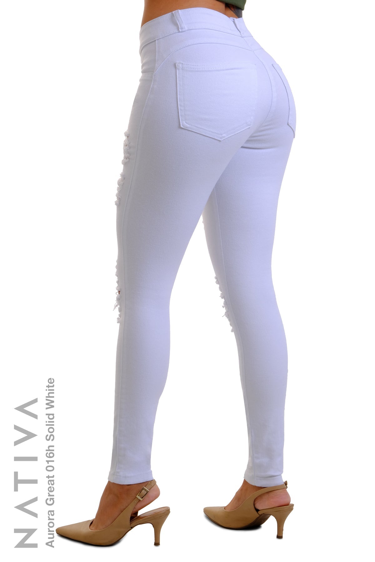 SUPER SKINNY JEANS, AURORA GREAT 016H WHITE, Talle Medio.