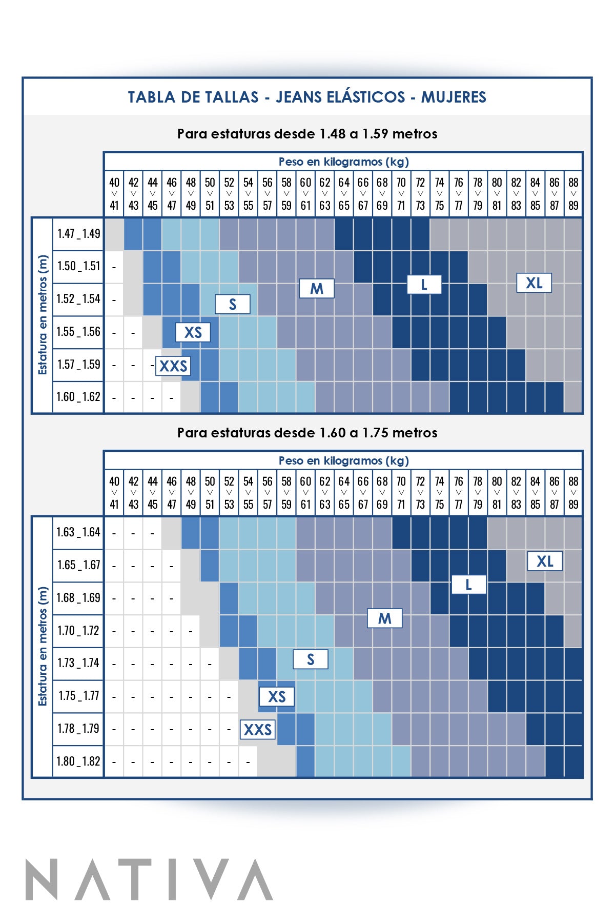 Tu talla NATIVA en Jeans Super Stretch es: