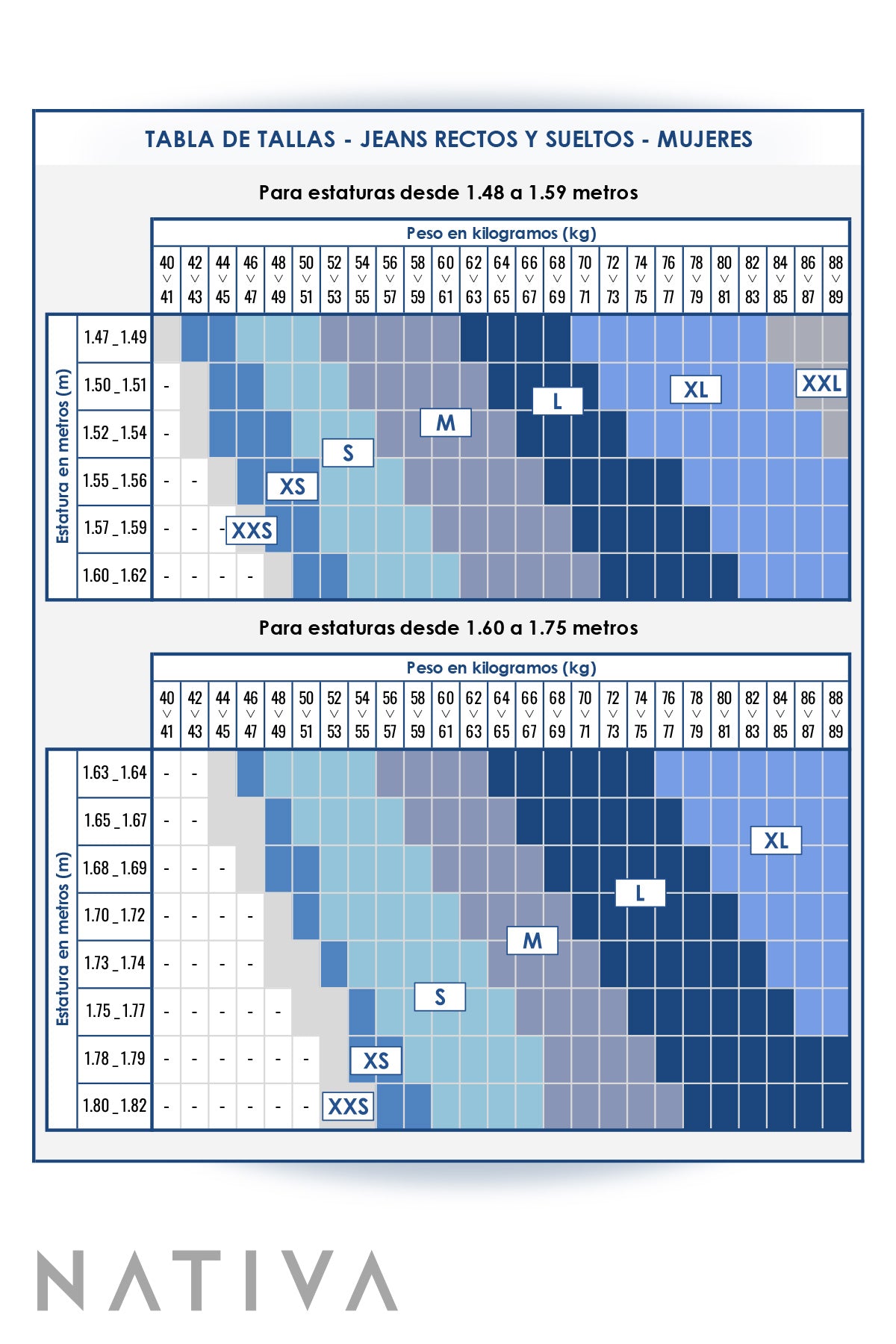 Tu talla NATIVA en Jeans Rígidos True Denim es: